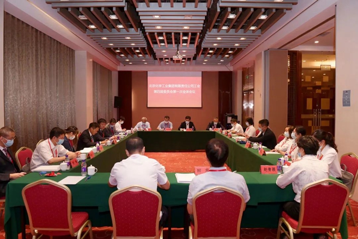 北京化工集團黨委書記、董事長王國華與新當選的工會委員會、經費審查委員會、女職工委員會三委會全體成員集體談話。